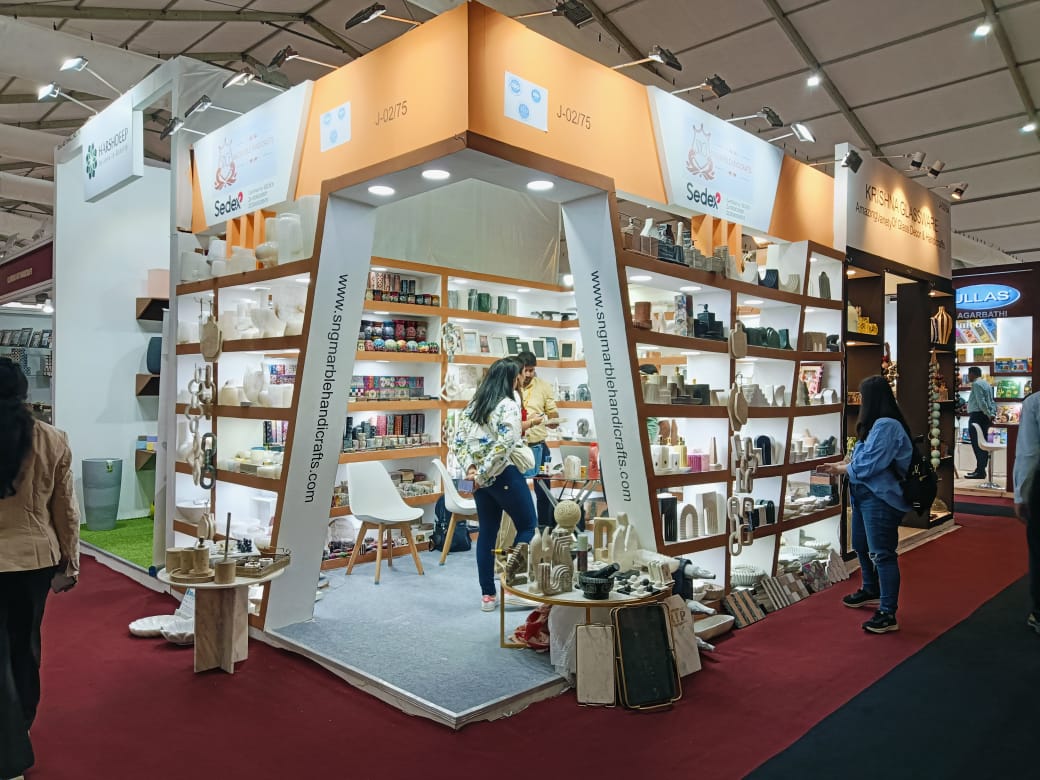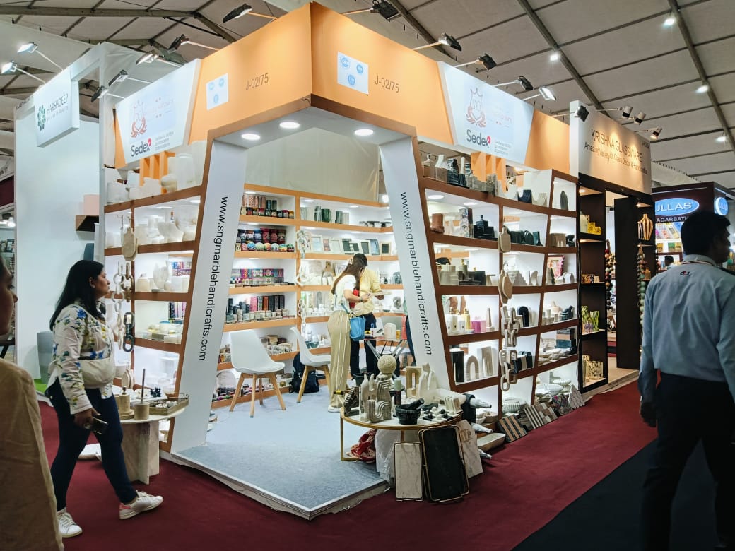 Inspired by India's rich handicraft heritage. Warm aesthetics combined with functional design, creating an inviting experience that highlighted handmade products and drew strong visitor attention.
