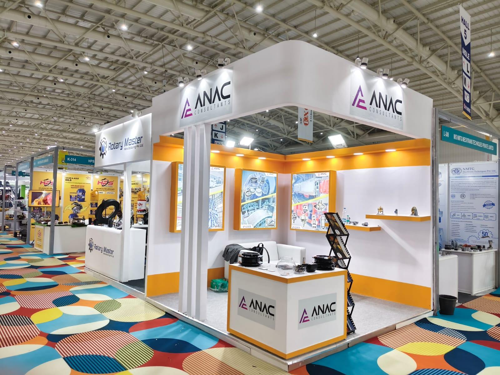 A 42 sqm stall reflecting strength, precision, and innovation. Organized and visually impactful product presentation with modern design elements, earning positive client feedback.